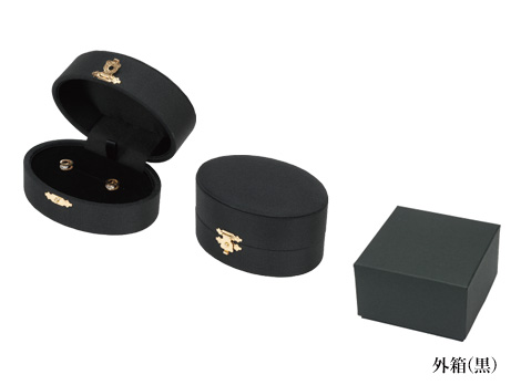 こちらのジュエリーケースは、シャンタン調とスエード調で出来ています。 正面のゴールドの留め具もポイント。