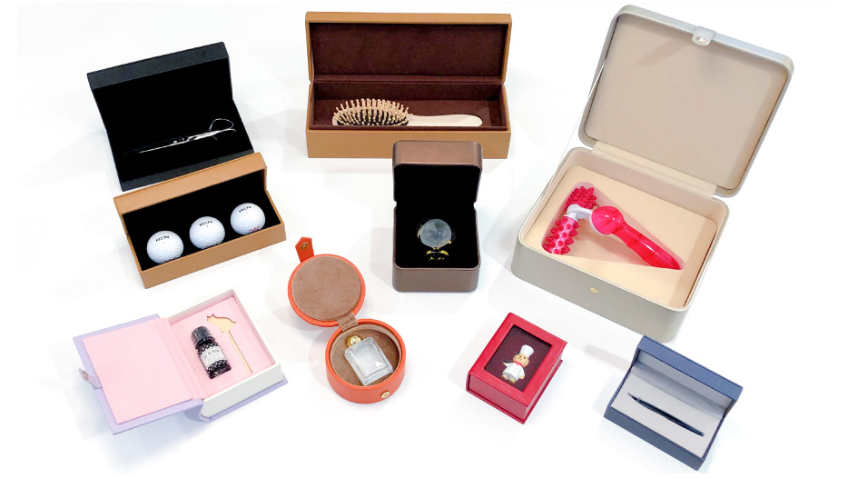 こちらの商品群のように、ジュエリーケース以外にもシザーケースやゴルフボールケース、